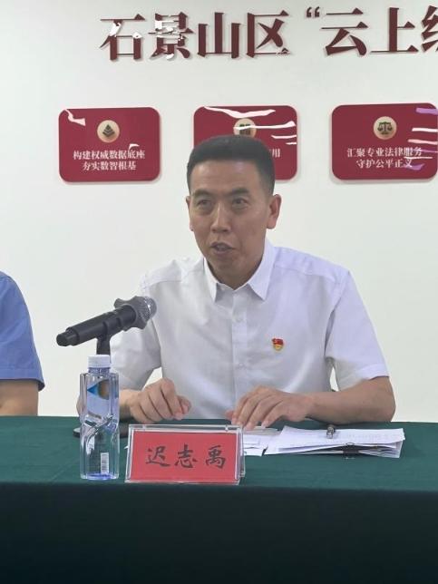 ▲石景山區(qū)委常委、政法委書記、區(qū)委辦公室主任遲志禹介紹“石景山區(qū)云上綜治信息化平臺” 姚瑤/攝
