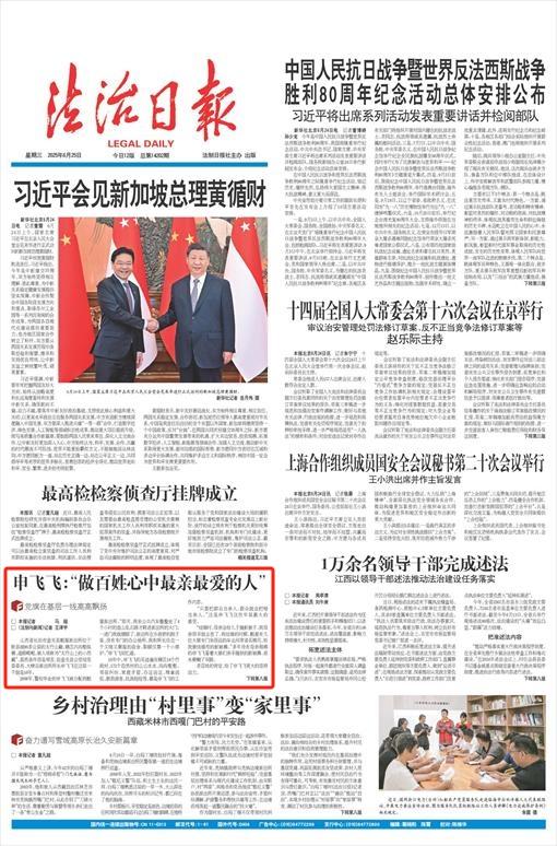 2022年,申飛飛榮獲全國“人民滿意的公務員”稱號。“當時鄉(xiāng)親們聽說我從北京回來,就第一時間往派出所趕,非要把獎章拿出來再給我戴一次。”申飛飛自豪地說,“他們說,這個牌牌是國家給的,但他們還想給我再戴一下。國家滿意,老百姓更滿意?!?/p>
