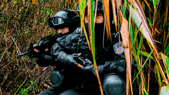 近日,云南西雙版納,邊境管理支隊特戰(zhàn)隊員在中緬邊境持械蹲守。