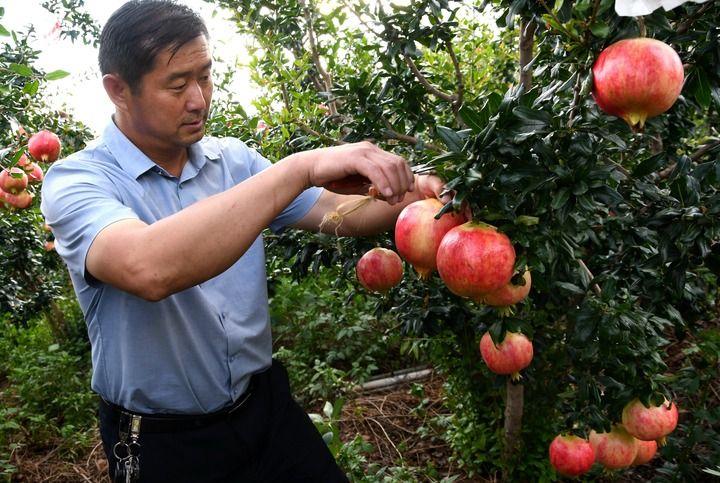 2024年9月10日,在涼山州會(huì)東縣姜州鎮(zhèn)山南村的山南德宇種養(yǎng)家庭農(nóng)場(chǎng),羅德宇在采收成熟的石榴。新華社記者 高健鈞 攝