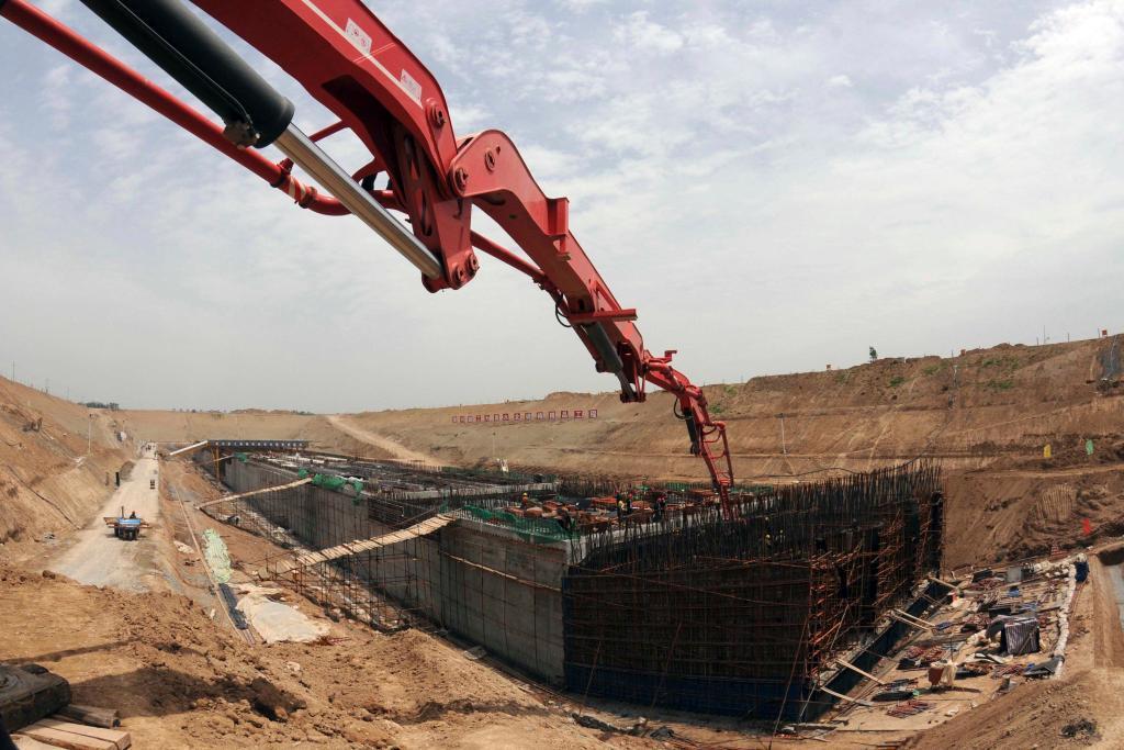2010年5月18日,河南黃河建工集團(tuán)施工人員在南水北調(diào)中線工程沁河倒虹吸施工現(xiàn)場(chǎng)澆筑廂形預(yù)應(yīng)力鋼筋混凝土管身。新華社發(fā)(楊帆 攝)