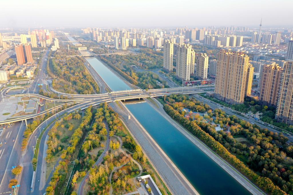 2024年11月5日拍攝的河南省焦作市區(qū)南水北調(diào)干渠及兩岸風(fēng)景。新華社記者 郝源 攝
