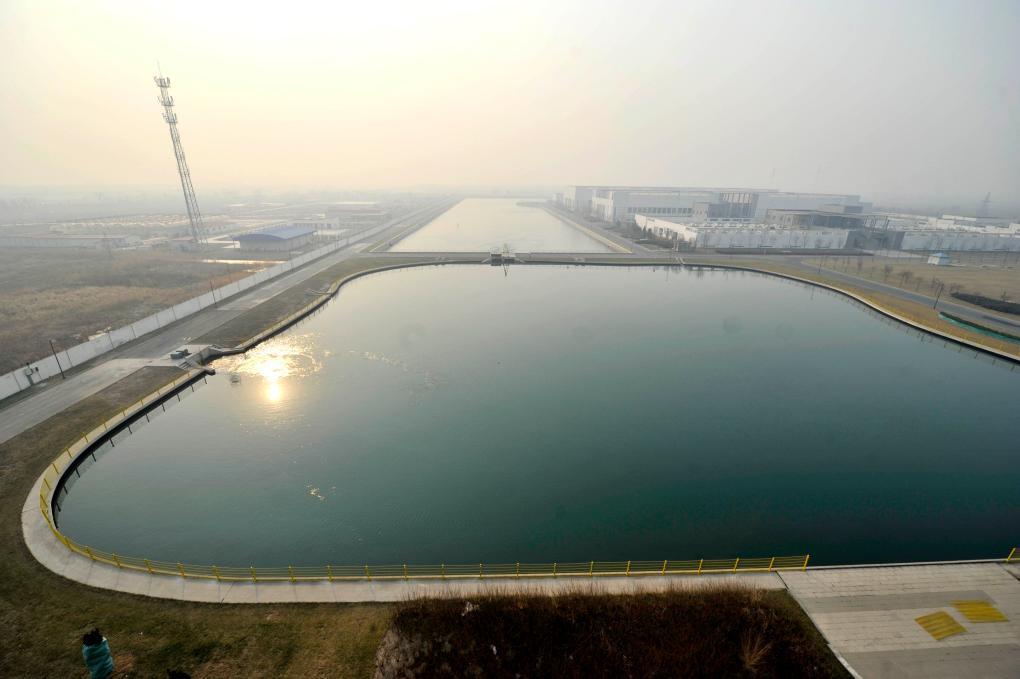 2014年12月27日,長(zhǎng)江水流入天津?yàn)I海新區(qū)津?yàn)I水廠的調(diào)節(jié)池內(nèi)。當(dāng)日,天津市南水北調(diào)中線工程正式通水。新華社記者 岳月偉 攝