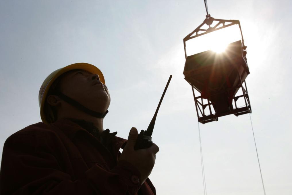2005年11月25日,南水北調(diào)中線工程水源丹江口水利樞紐大壩加高工程中,施工人員指揮吊運(yùn)混凝土。新華社發(fā)(陶德斌 攝)