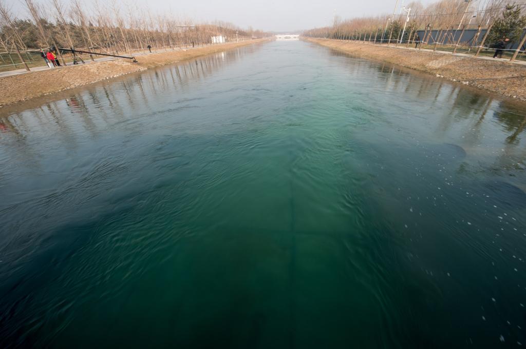 2014年12月27日拍攝的通水后的南水北調(diào)中線一期工程總干渠終點(diǎn)團(tuán)城湖明渠。當(dāng)日,南水北調(diào)中線一期工程總干渠終點(diǎn)團(tuán)城湖明渠開閘放水,北京市南水北調(diào)工程正式通水。新華社記者 張宇 攝