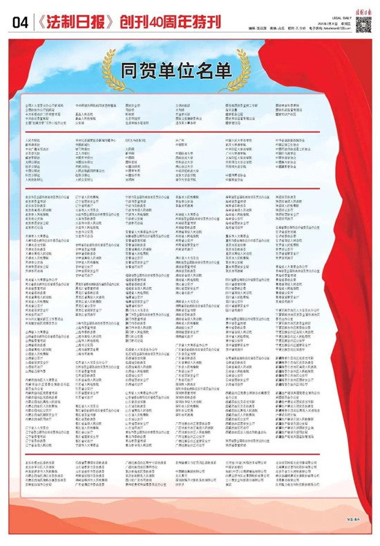 《法制日報(bào)》創(chuàng)刊四十周年同賀單位名單