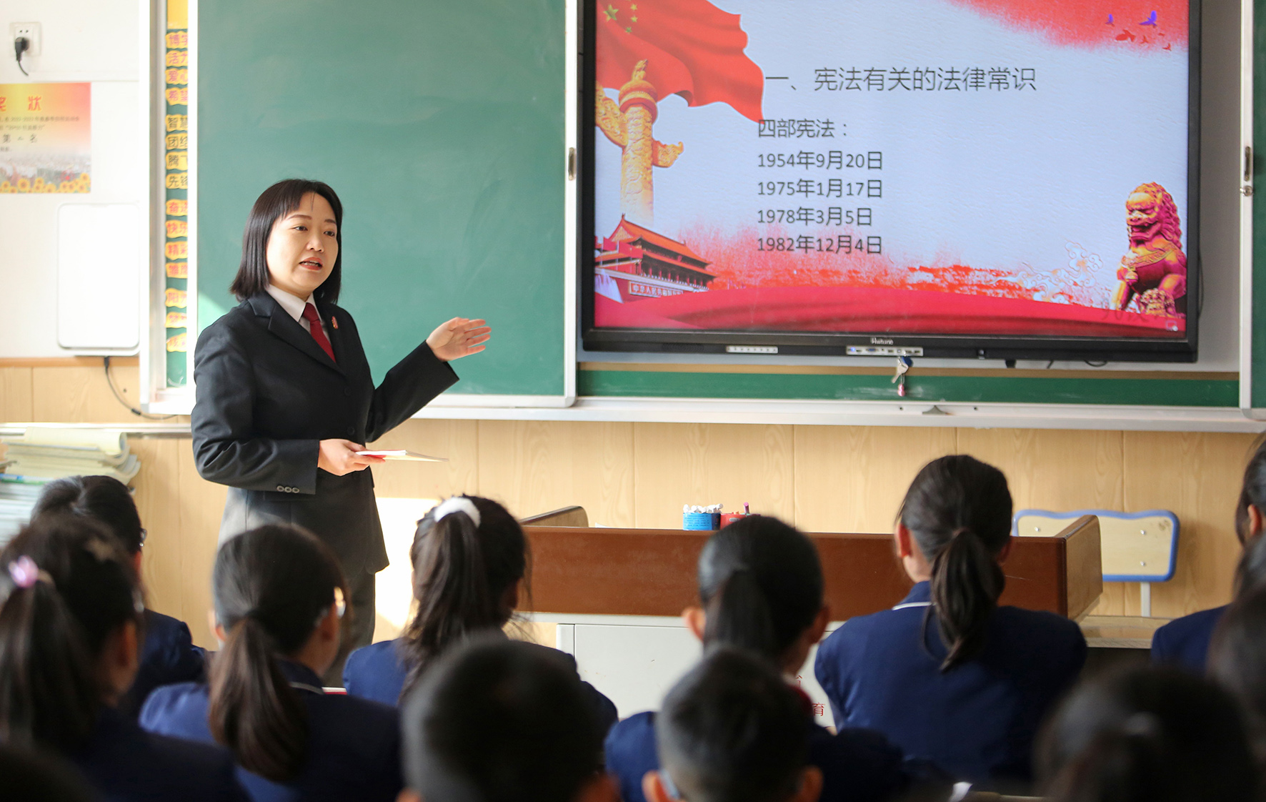 12月4日,陜西省渭南市中級(jí)人民法院組織法官走進(jìn)轄區(qū)中小學(xué),開(kāi)展憲法宣傳進(jìn)校園活動(dòng)。