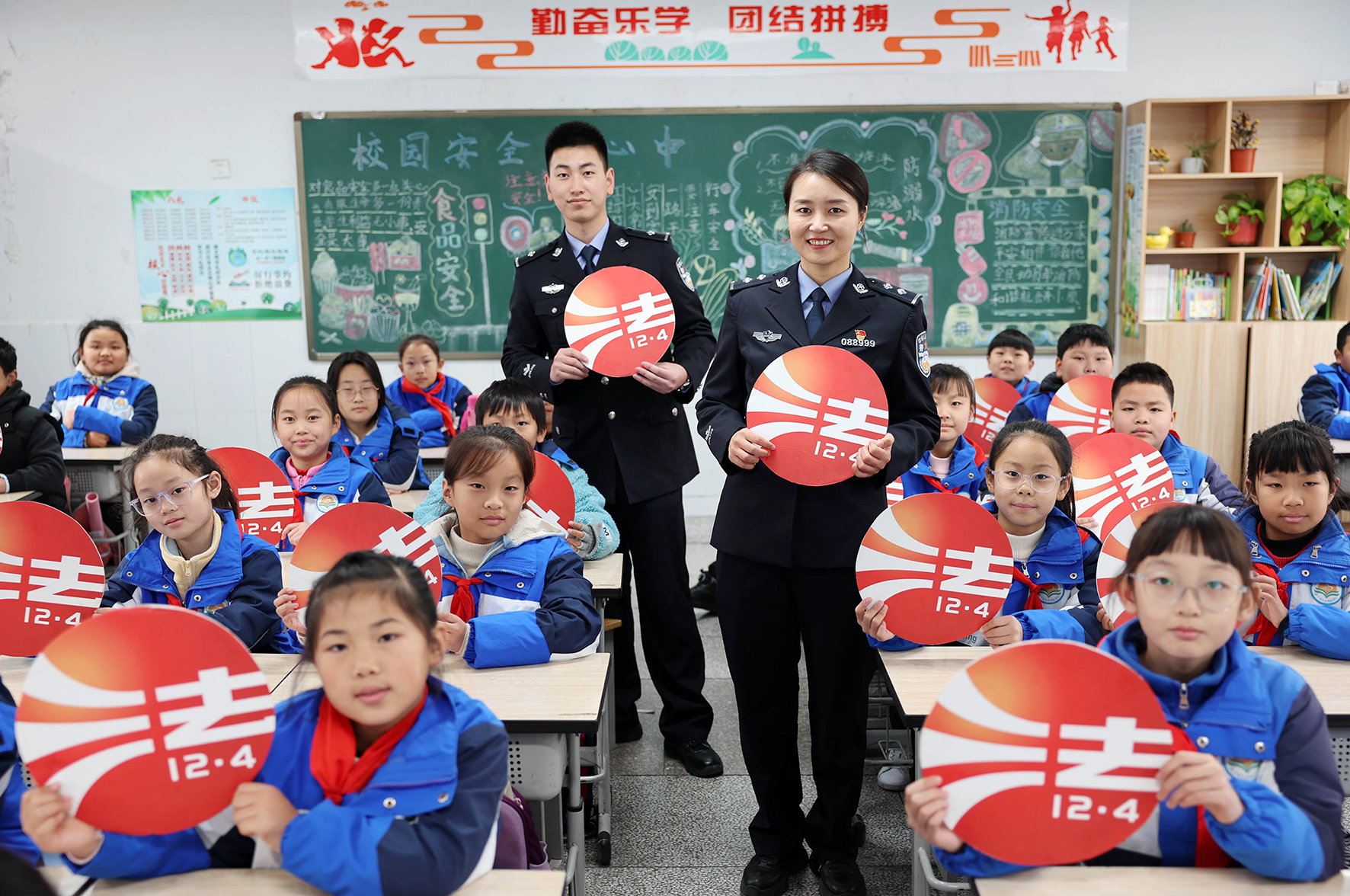 12月4日,山東省滕州市公安局北辛派出所民警為學(xué)生們講解憲法知識(shí)。