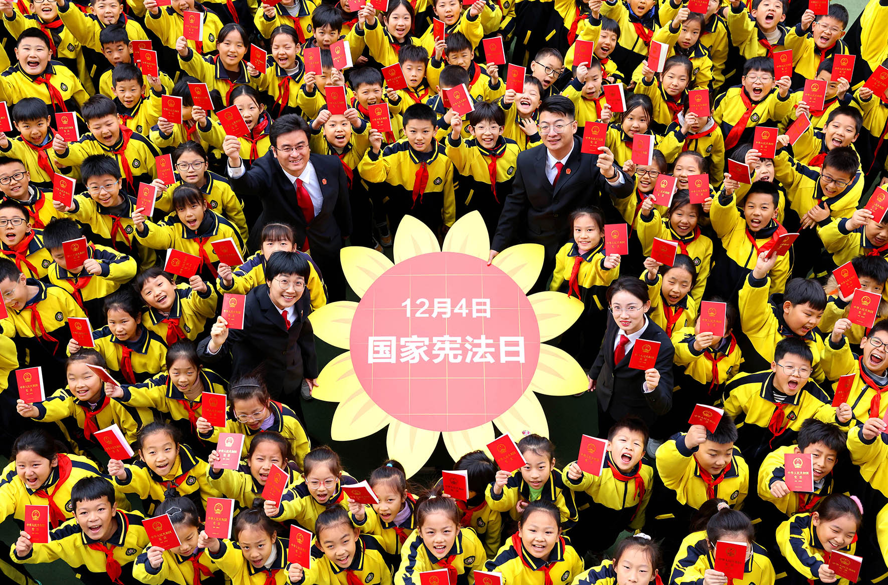 12月4日,安徽省含山縣司法局普法志愿者在姚廟中心學(xué)校向小學(xué)生宣講憲法知識(shí)。