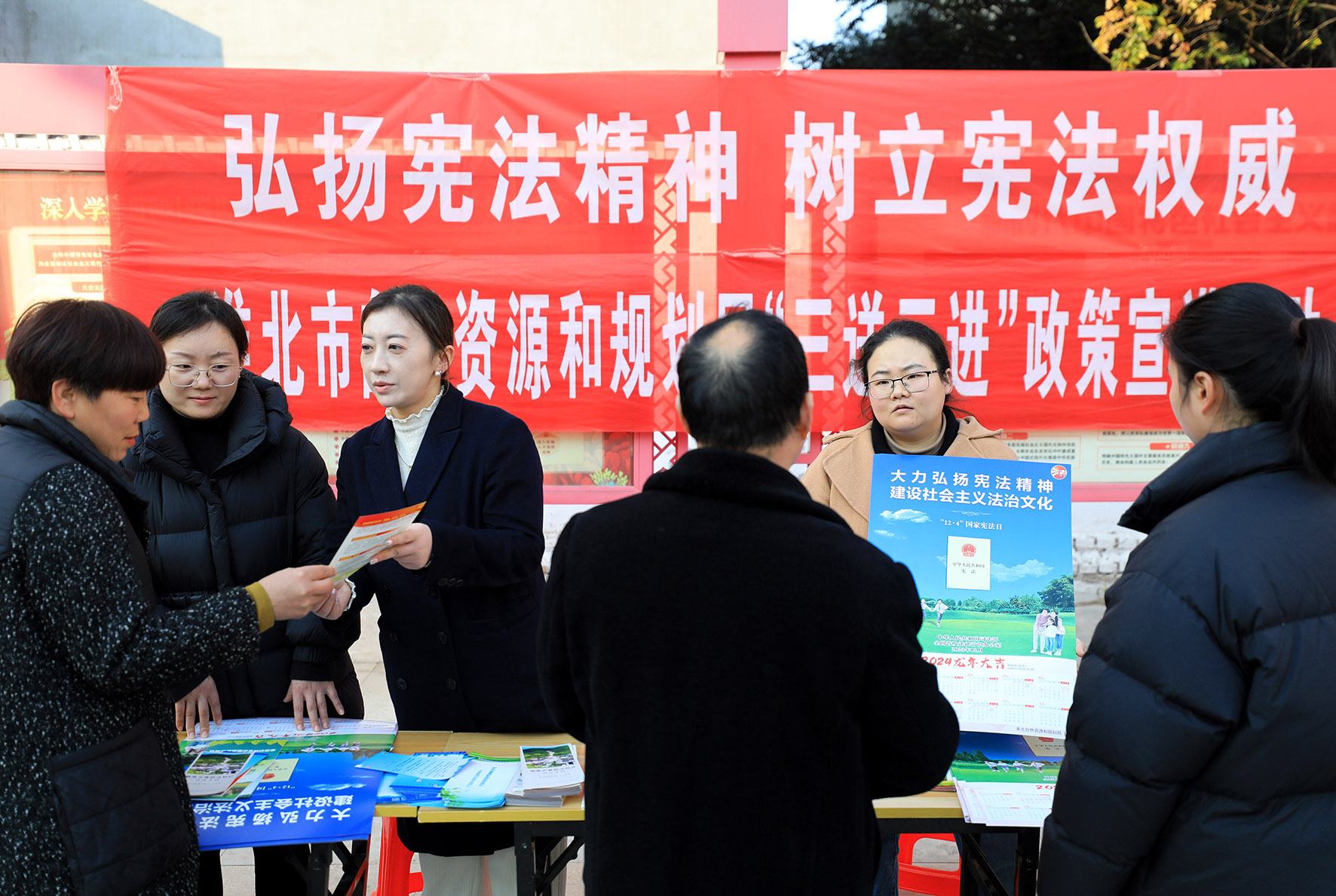 12月4日,安徽省淮北市自然資源和規(guī)劃局工作人員在代莊社區(qū)“國(guó)家憲法日”宣傳現(xiàn)場(chǎng),為群眾解答法律問(wèn)題、提供法律咨詢。