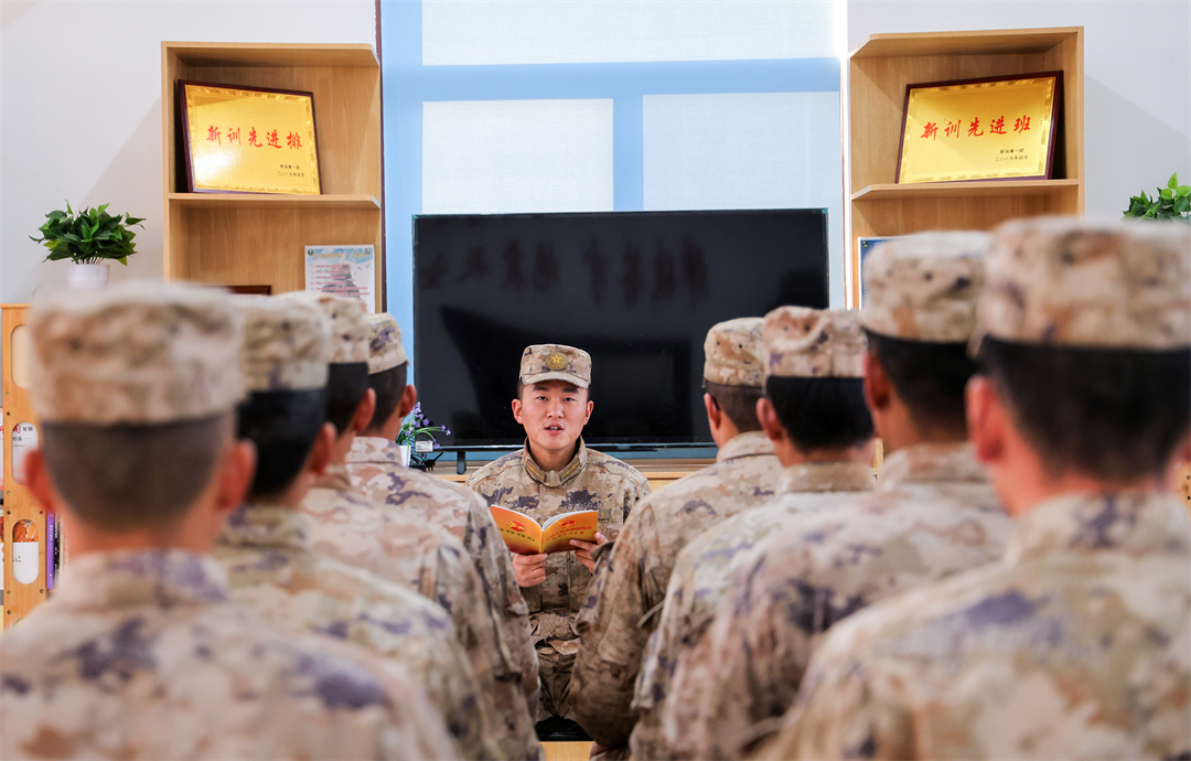 圖為12月1日,該旅某連官兵正在學(xué)習(xí)憲法知識并展開討論交流。